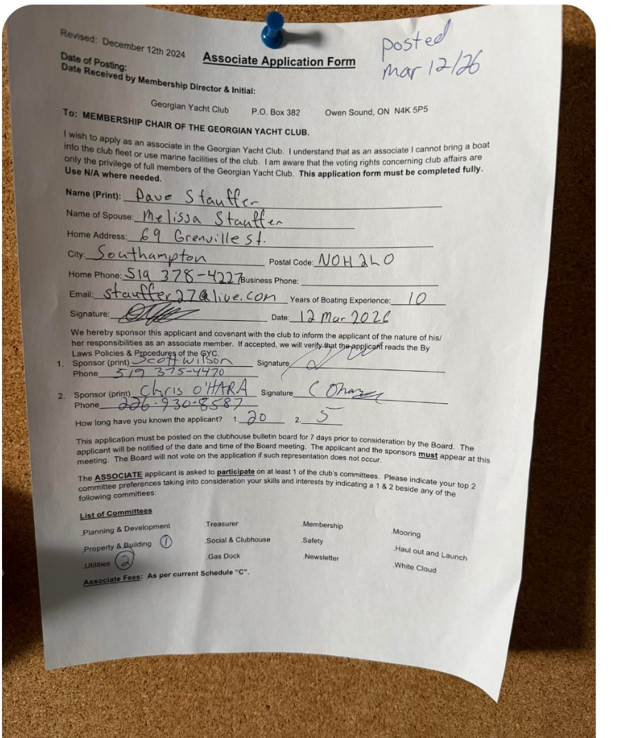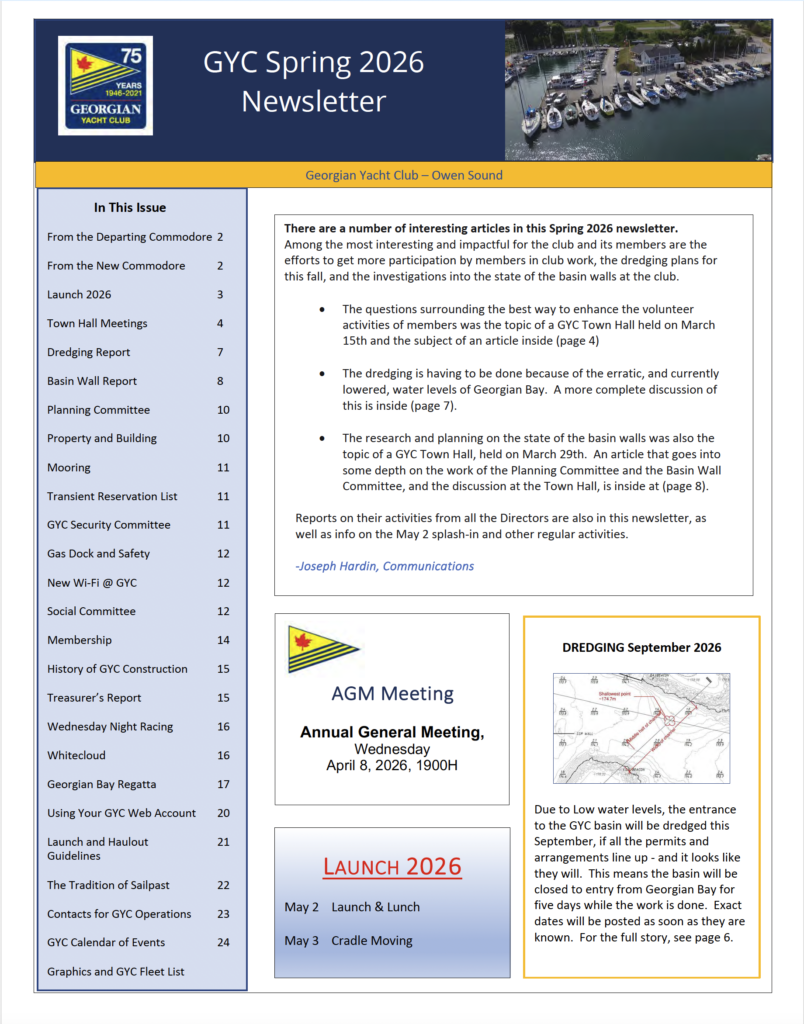 TAKE NOTICE that the Annual General Meeting of the Georgian Yacht Club will be held in the Clubhouse on Wednesday, April 8, 2026, at 1900 H.